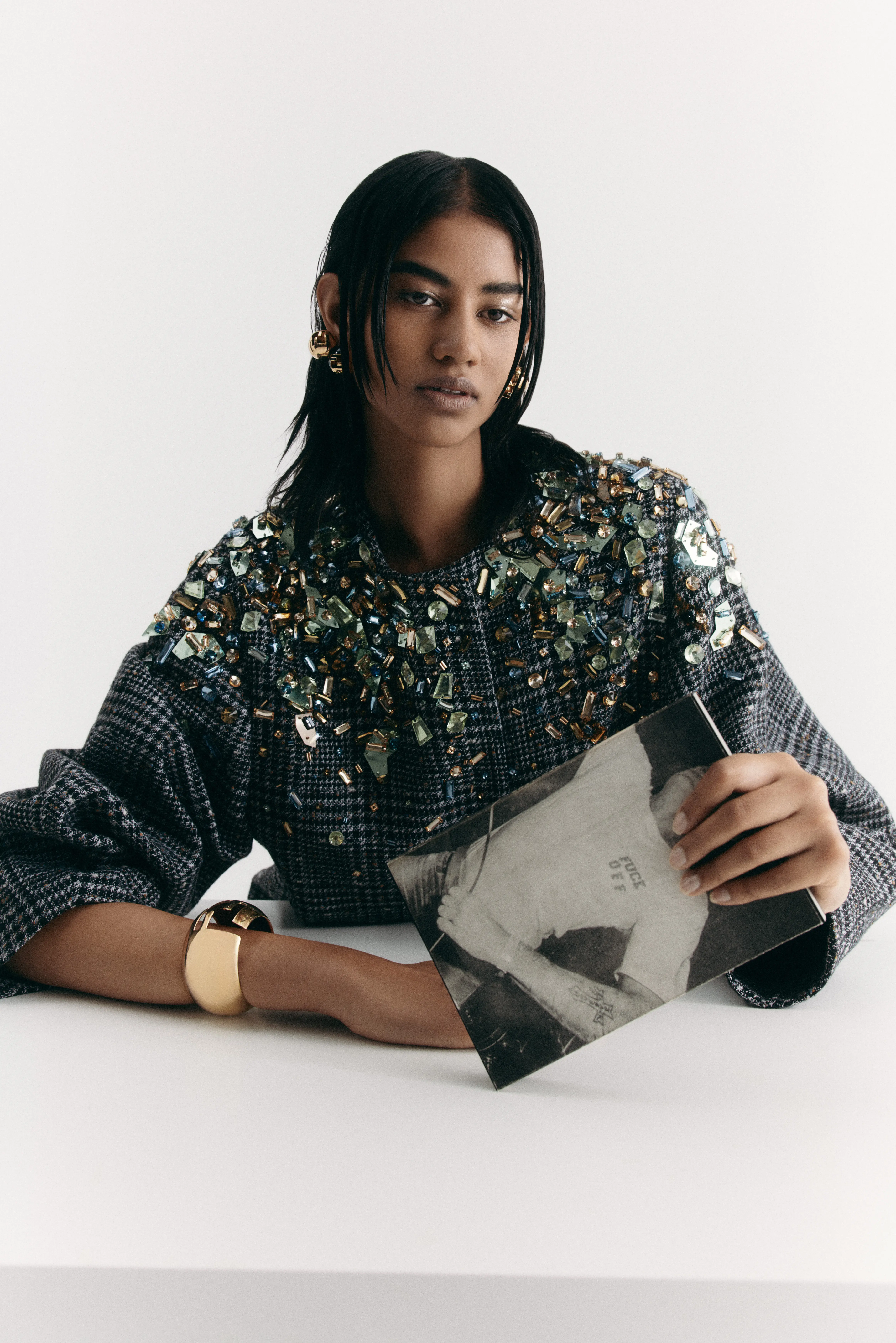 The idea came from wanting to bring a more personal element into what began as a go-see day. While researching my favourite portraits, I remembered the incredible image of Alexander McQueen on a tabletop with a skull by Tim Walker, and that’s where the approach came from. Inviting people to bring something meaningful to set was a way of bringing more individuality to the shoot, which we then pitched to Coat Magazine. The magazine then fleshed it out into a really special question-and-answer session with each model, and I will always remember the stories and laughs we had on the day.